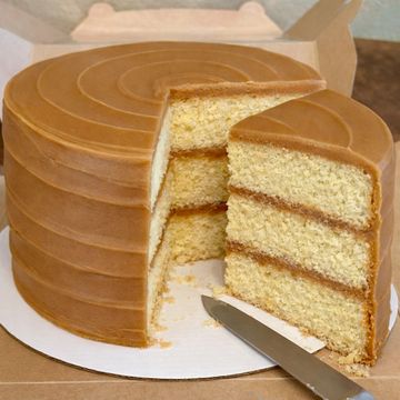 Just like grandma used to make! Three tall, fluffy layers of buttery yellow cake that’s coated in the ultimate caramel icing. The icing is cooked slowly on the stovetop until it reaches the perfect temperature, then whipped and poured over the cake. No shortcuts here, just old fashioned goodness. 3-layer, 8inch cake or 13X9 flat cake.